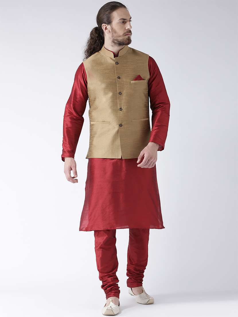 - » red silk blend kurta pyjama set with nehru jacket