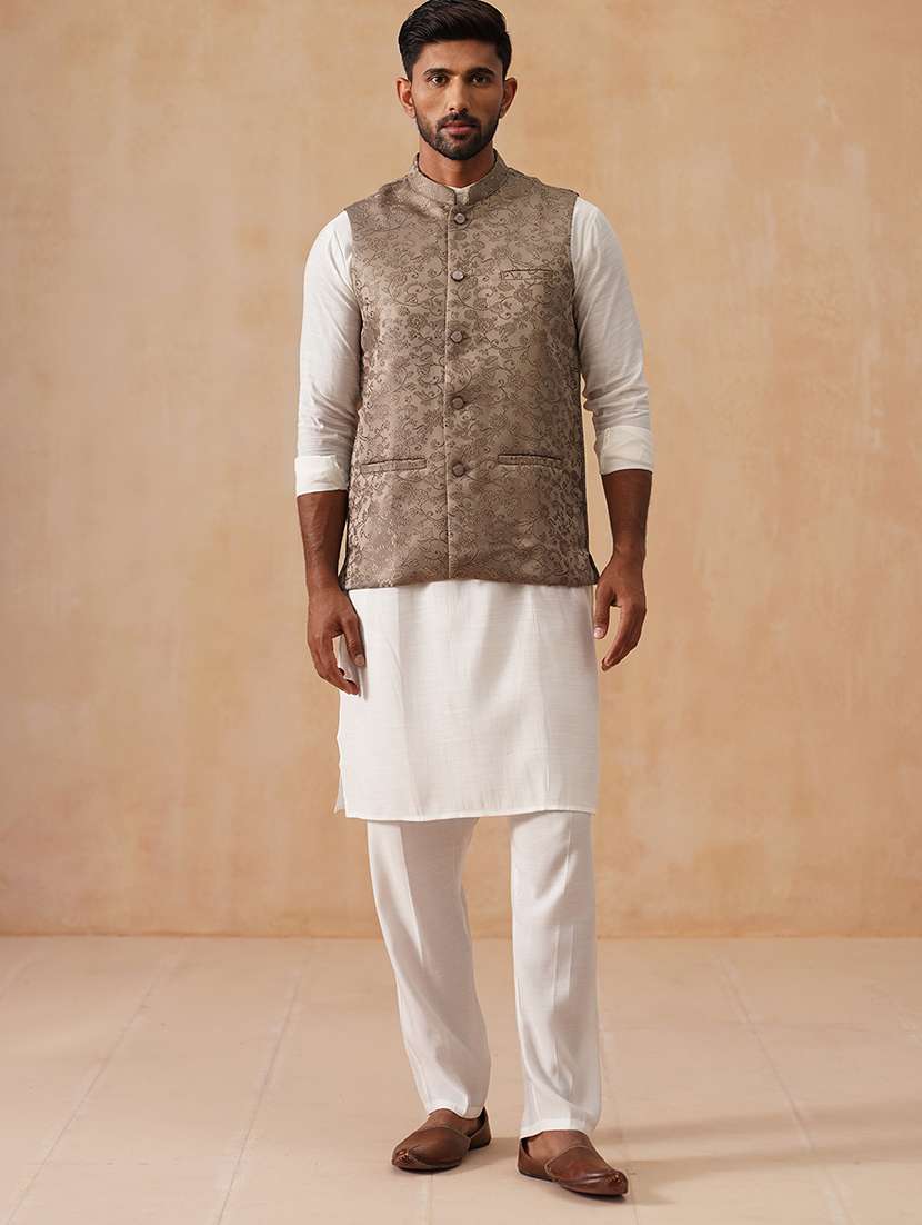 - Look stylish and confident in Jompers brands with beige Nehru jackets in which you will feel your best.