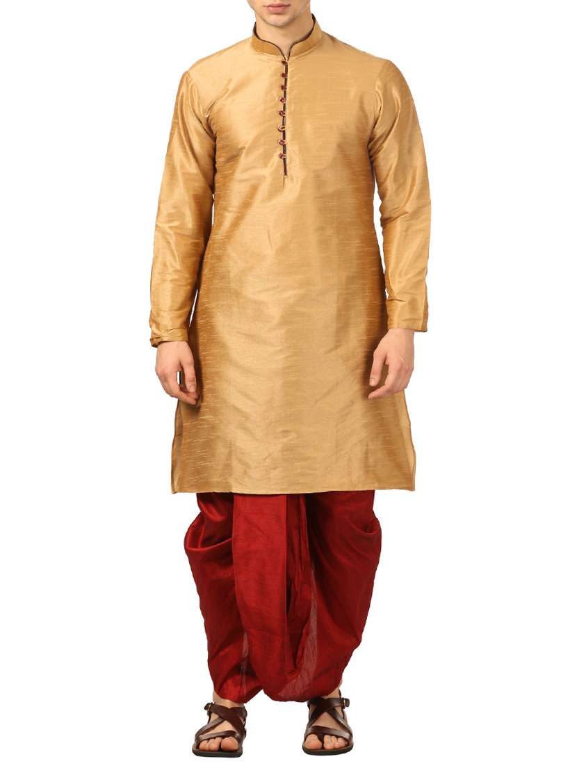 beige silk blend dhoti kurta set - 16114999 - Very Small Image - 1