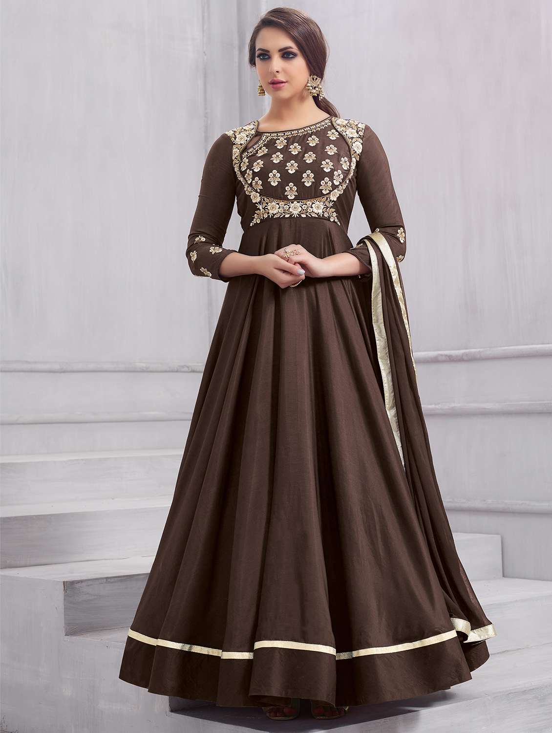 embroidered semi-stitched flared suit - 15503635 - Very Small Image - 1