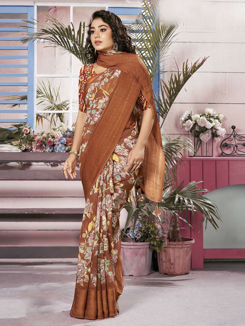 brown printed saree with blouse - 19986865 - Very Small Image - 1