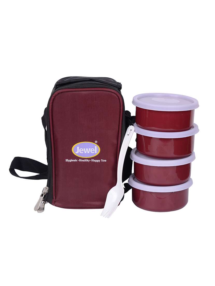 jewel luncheon 4 plastic lunch box with bag for men and women, maroon