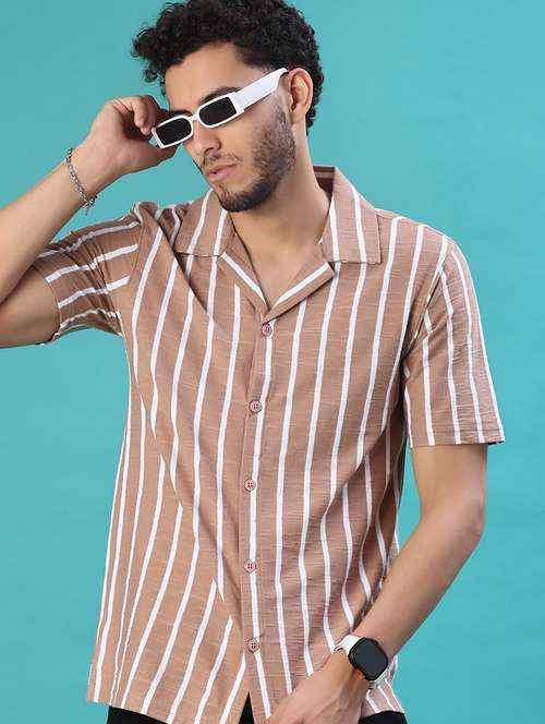 men striped short sleeve regular fit casual shirt