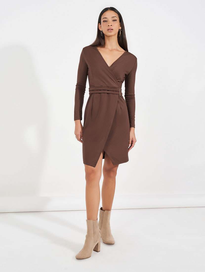 - Looking for some awesome collection of dresses? Well, lay your hands on this dress from Styli and also get the option of choosing from brown colour.