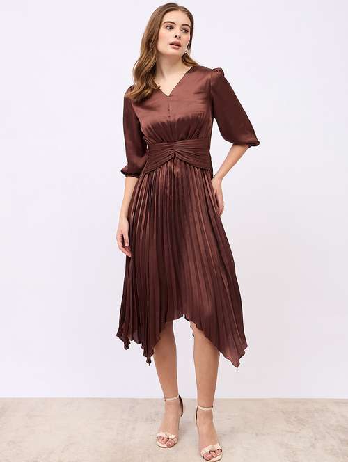 - Looking for some awesome collection of dresses? Well, lay your hands on this dress from Styli and also get the option of choosing from brown colour.