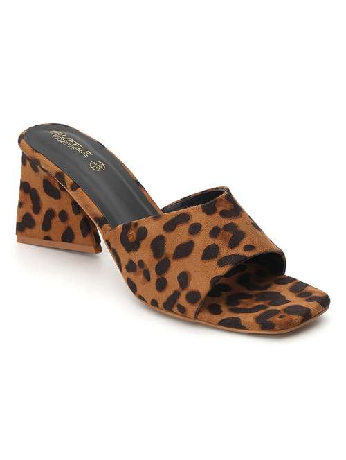 women animal print slip on block heel sandal