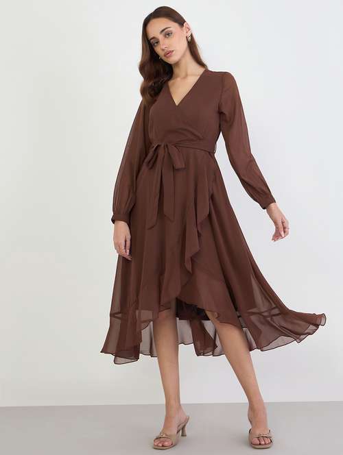 - Looking for some awesome collection of dresses? Well, lay your hands on this dress from Styli and also get the option of choosing from brown colour.