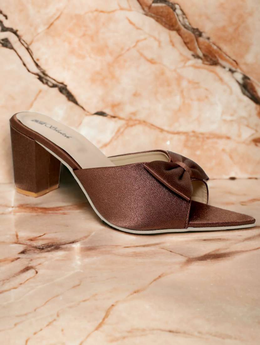 brown synthetic slip on sandals