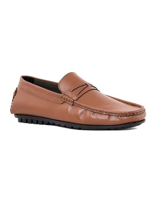 brown synthetic slip on loafers