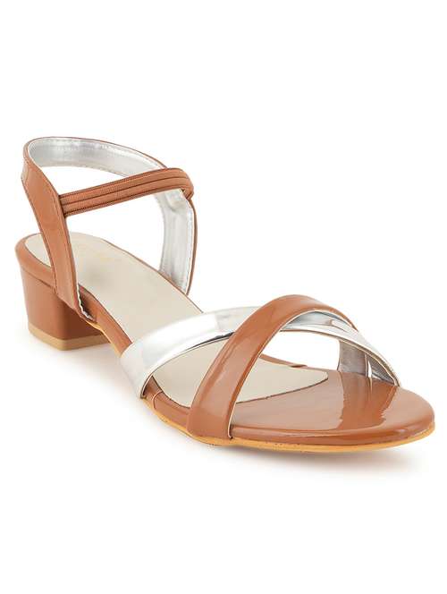 brown back strap block heel sandal