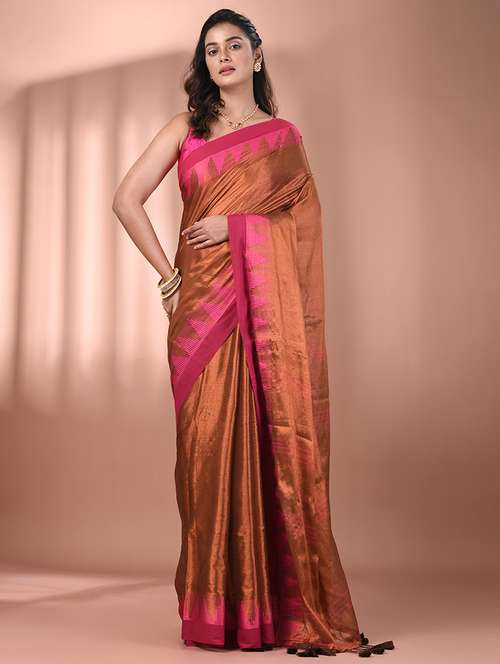 - » women solid with bordered handloom saree with blouse