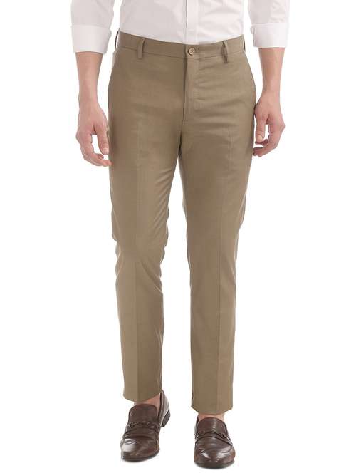 brown solid flat front formal trouser - 18004634 - Very Small Image - 1