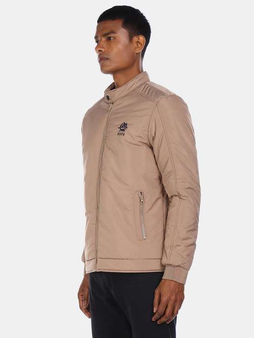 beige solid casual jacket