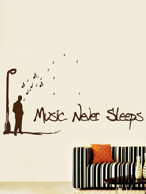 wallskart music never sleeps brown wall sticker