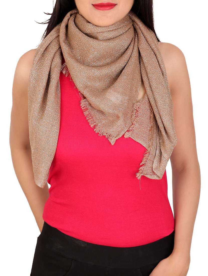Anekaant Brown Shimmer self design Viscose Lurex Women's Stole. Has Frayed Ends. Size -90 x 180 cm.