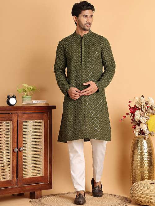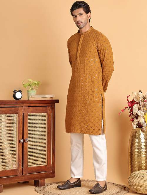 - » men mandarin neck embroidered kurta pyjama set