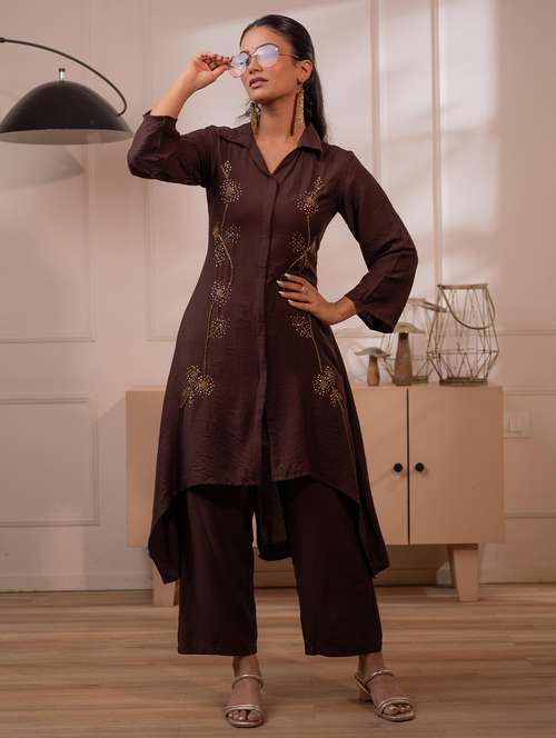 - Find gorgeous sets of ethnic wears in trending designs in brown colors suitable for festive wear of occasions.