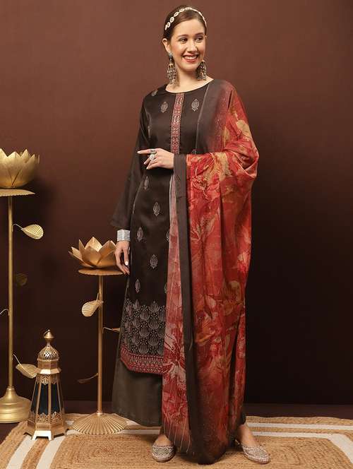 brown round neck unstitched suits