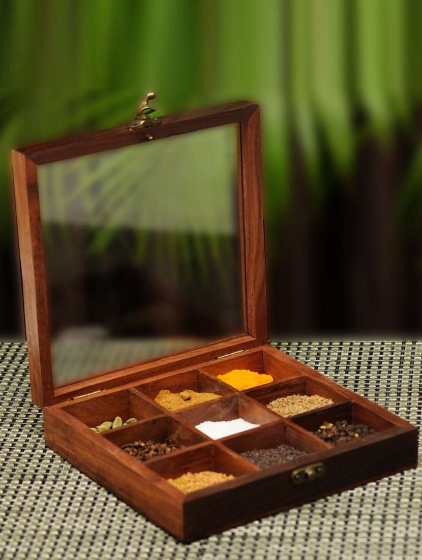- » square wooden spice box with spoon