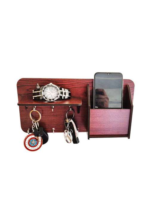 - » home sparkle wall mounted key holder with mobile & watch slot - brown