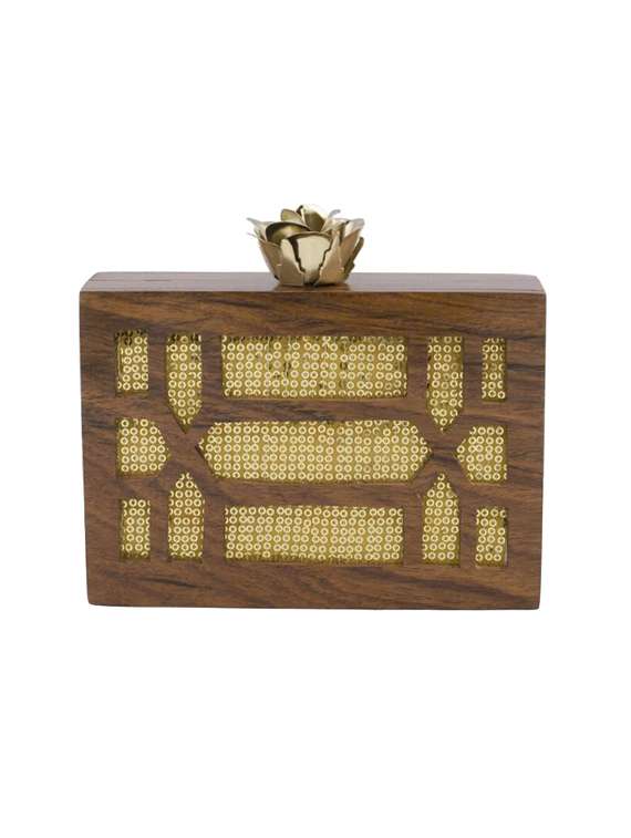 brown wood quirky clutch