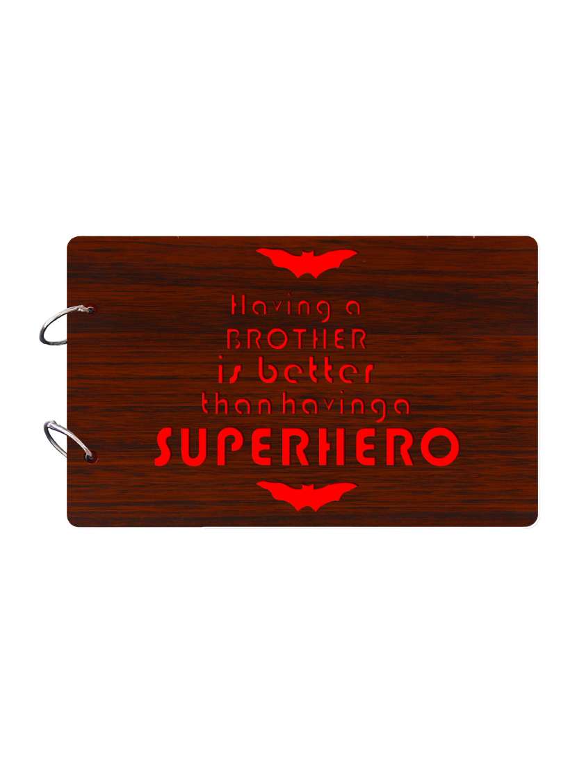 "having a brother is better than having a superhero"wooden brown photo album