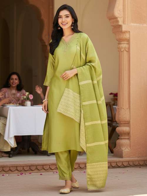 - Save your time mixing and matching various ethnic pieces and invest in beautiful suit set ethnic sets from The Suitable brands that give a well-fitted look in all styles.
