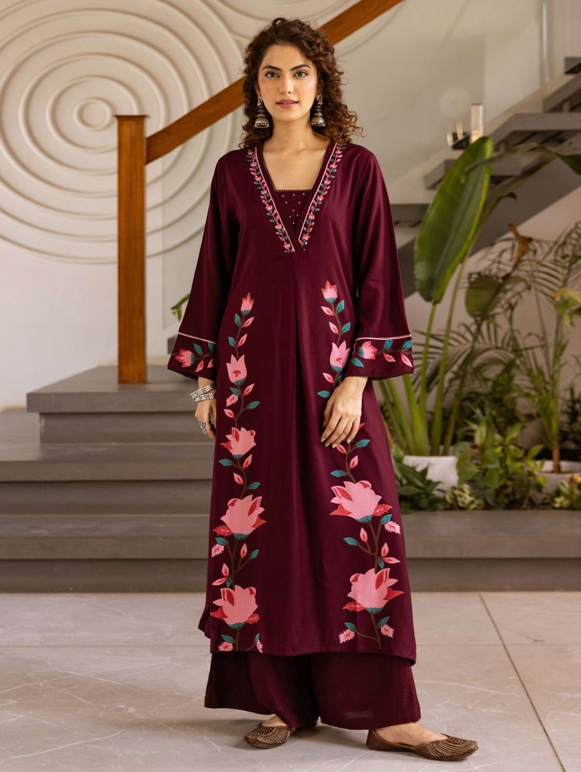 - » women floral printed long sleeve kurta palazzo set