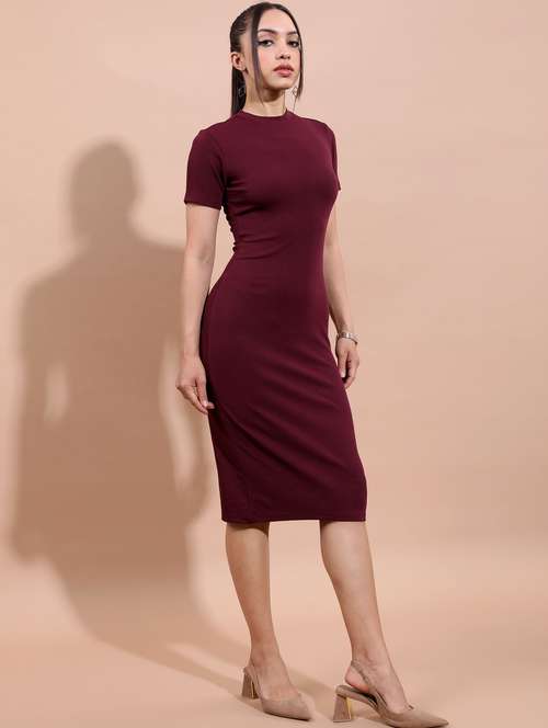 - » burgundy solid bodycon dress