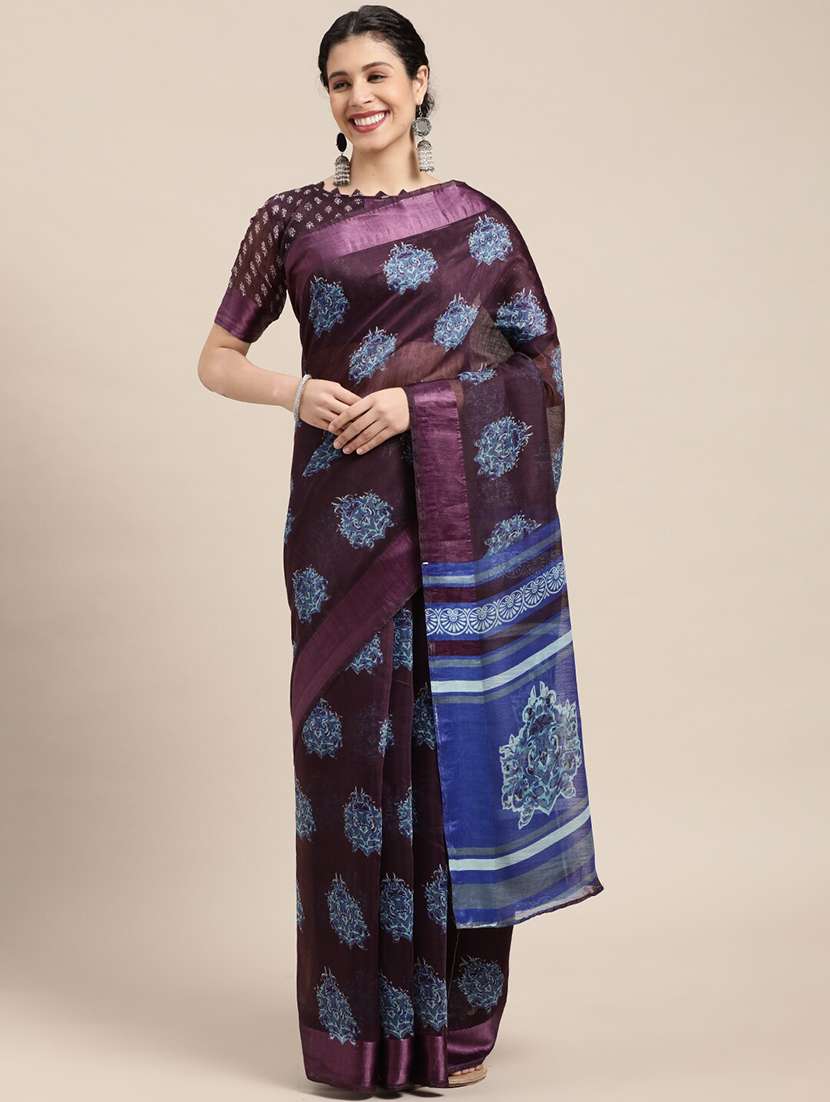 - » burgundy cotton blend printed saree with blouse