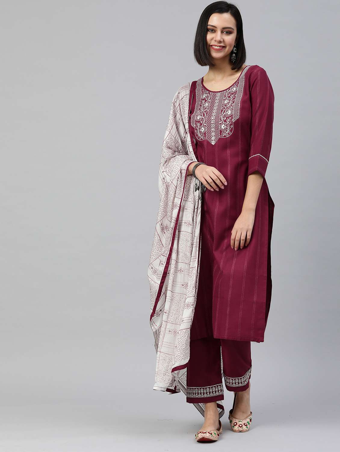- » burgundy cotton blend kurta pant set