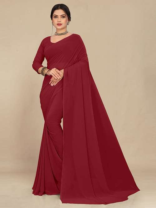 women maroon plain saree  - 21538978 - Very Small Image - 1