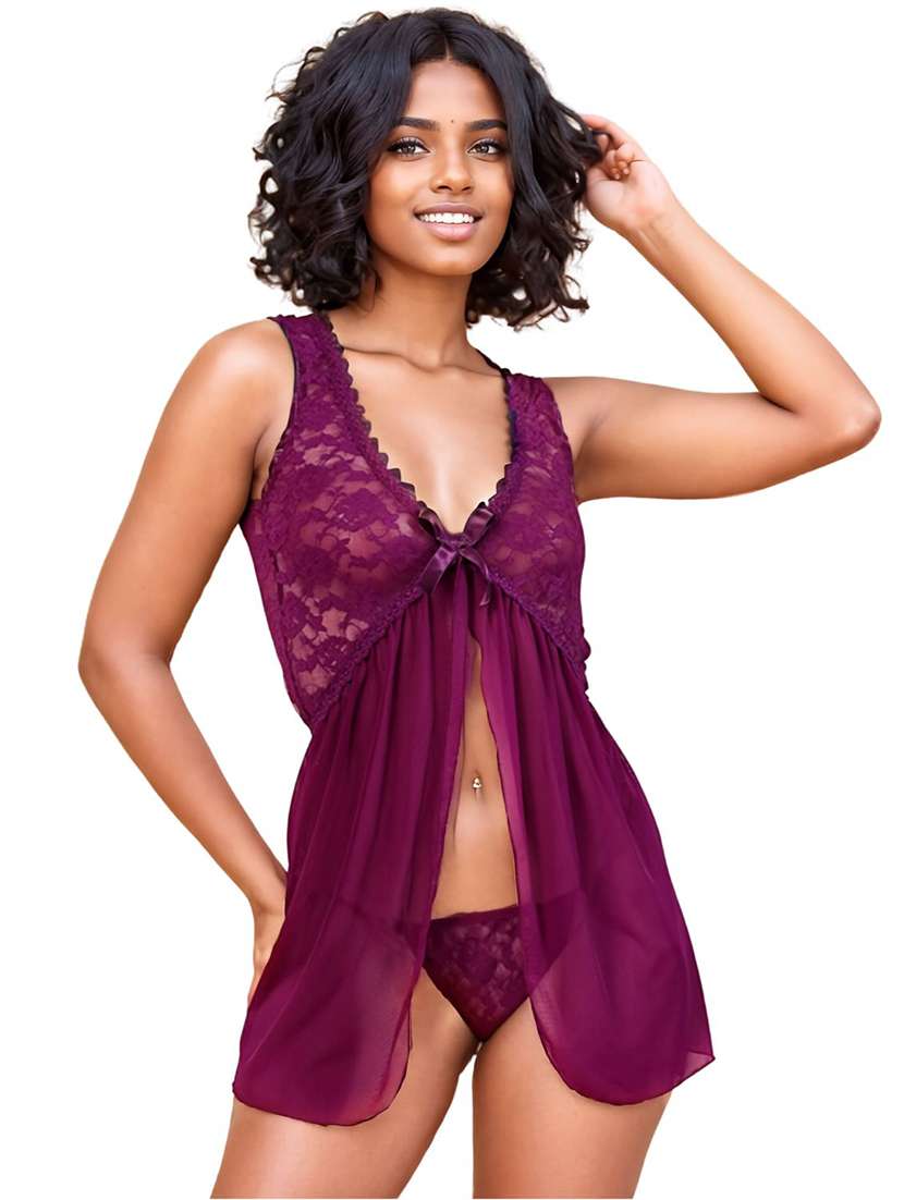 - » women solid sleeveless sheer lace babydoll set