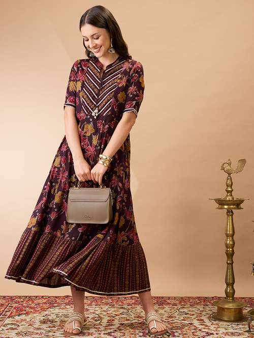 - LimeRoad brings to you the classic range of rayon ethnic dresses handcrafted with gota work art to give you an effortless traditional look.
