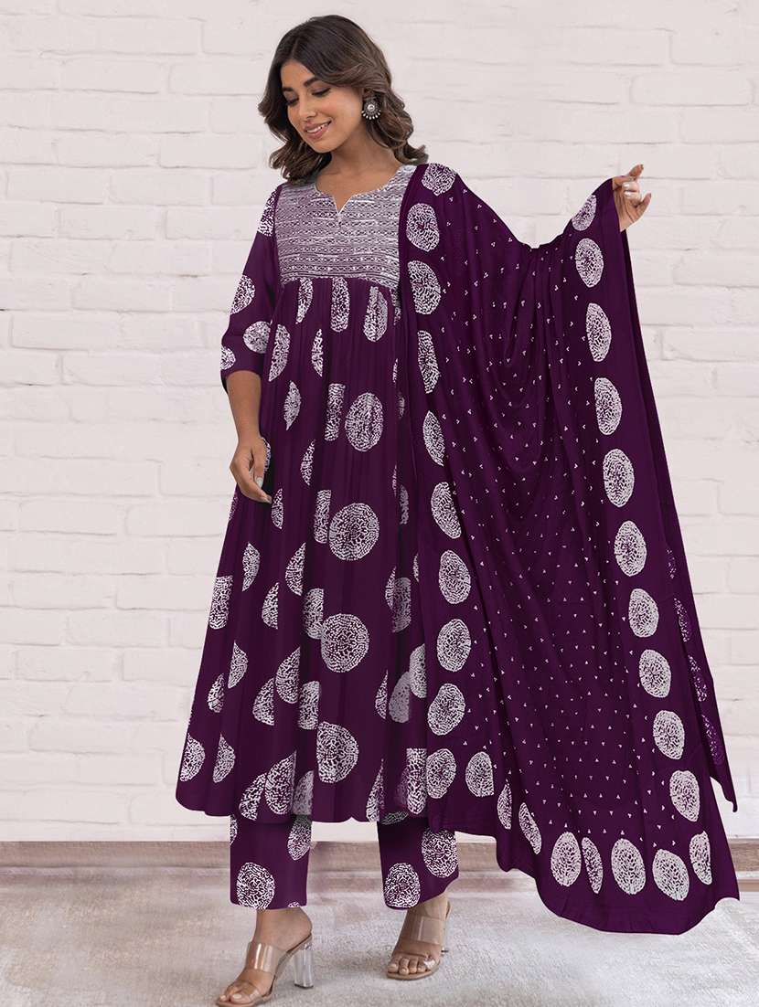 - » women printed three quarter sleeve anarkali kurta pant with dupatta set