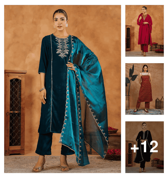 women three quarter sleeve kurta and pant with dupatta