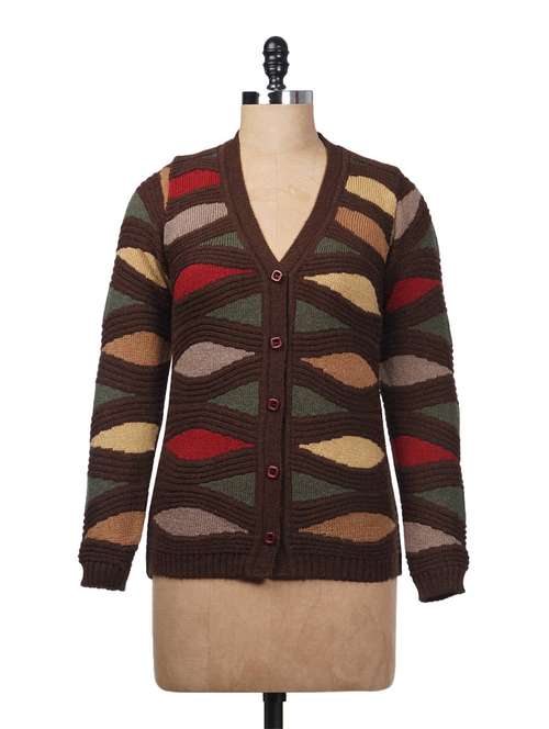 brown acrylic printed cardigan