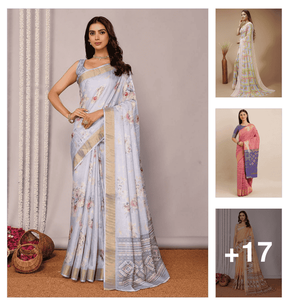 women floral printed saree with blouse
