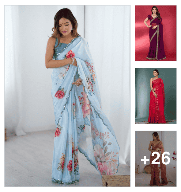 women floral printed bordered saree with blouse