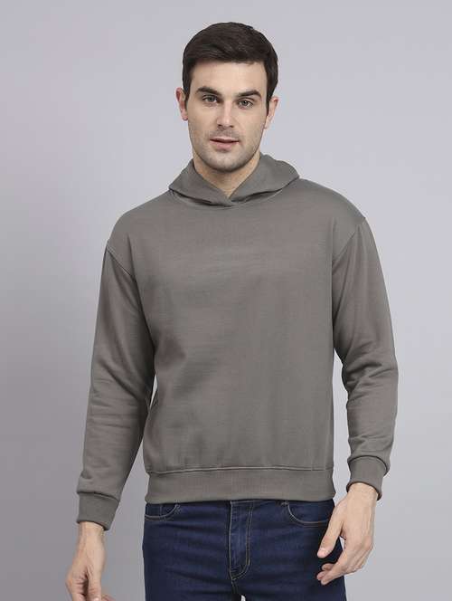 men solid long sleeve regular fit hooded sweatshirt - 22101750 - Very Small Image - 1