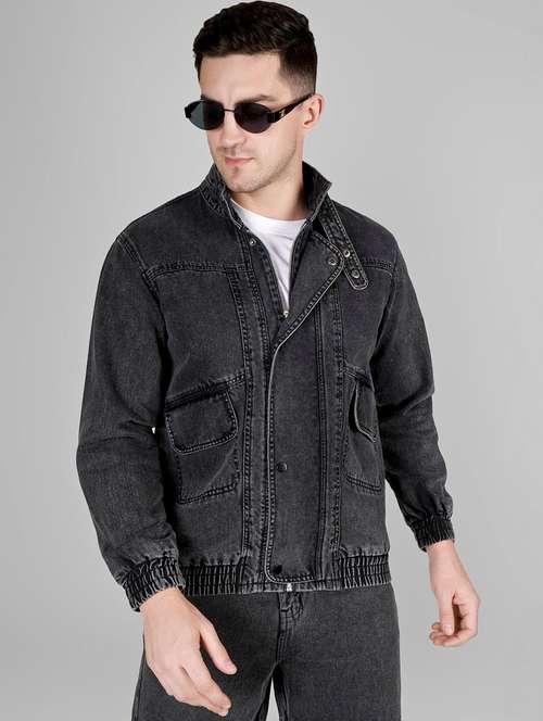 men charcoal denim denim jacket