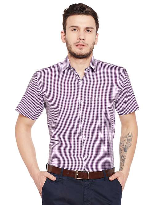 purple checkered formal shirt