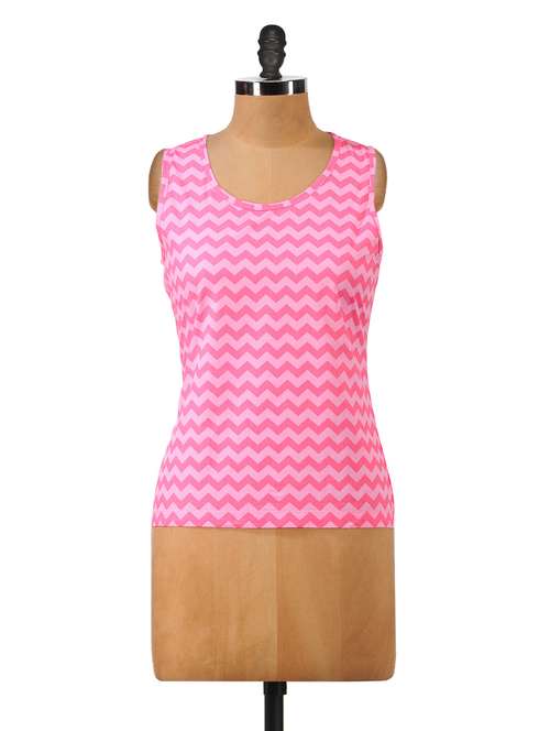 Hypernation Pink and White Color Zig-Zag Style Sleeveless Tops For Women