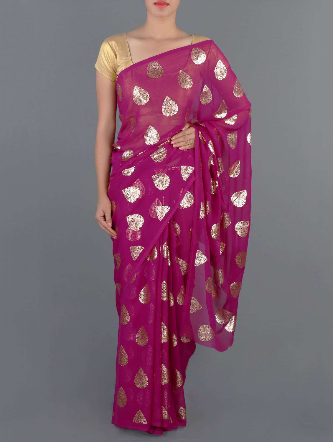 chiffon silver foil print saree