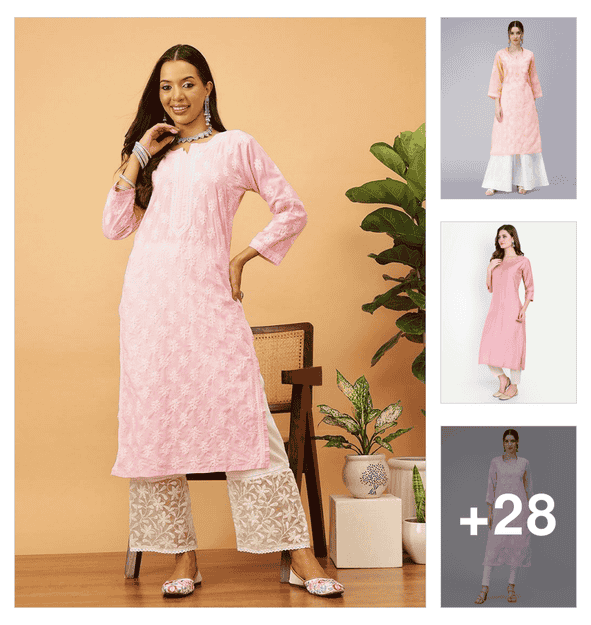 chikankari cotton straight kurta