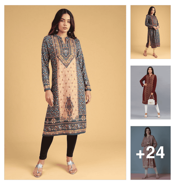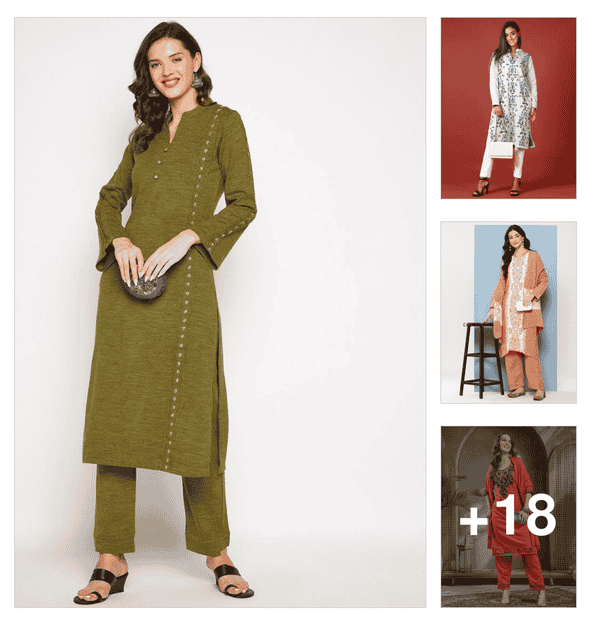 In patterns, you will find rounded neck and collared kurtas for formal and casual themes. Silhouettes matter in every garment so, you can choose from straight to A-line and flared woolen kurtas for women.