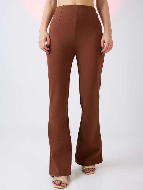 - » globus women coffee stretchable mid-rise workwear bootcut treggings