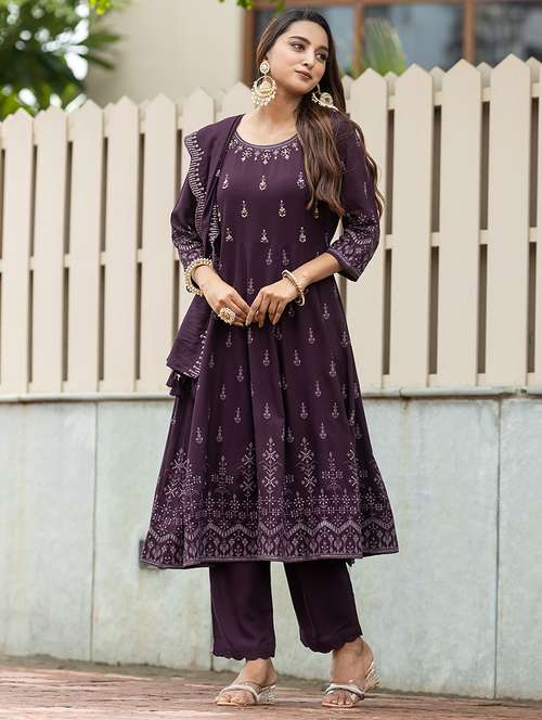 women three quarter sleeve kurta pant with dupatta set - 21680614 - Very Small Image - 1