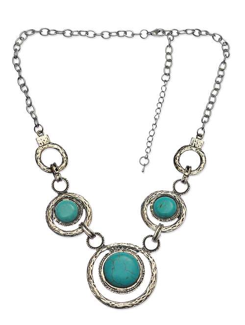 turquoise stone embellished circular interlinked necklace - 9640980 - Very Small Image - 1