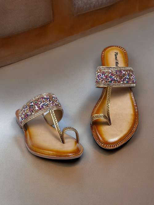 copper synthetic slip on sandals